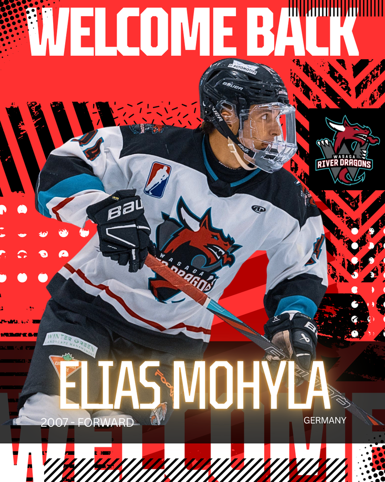 The Wasaga River Dragons are proud to announce that 2007-born forward Elias Mohyla has officially returned for the 2026/27 season.